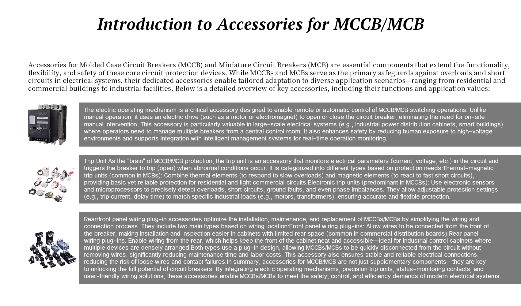 The shunt release is an accessory for circuit breakers that enables remote tripping. When it receives a control signal (voltage pulse), it immediately trips the breaker, cutting off the circuit. It is commonly used for emergency shutdowns, fire alarm systems, and remote protection.