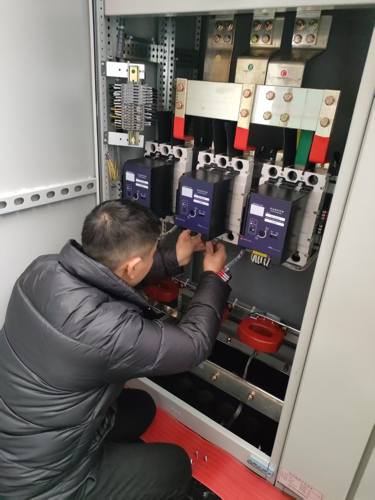- Operation of the motorized operating mechanism via the panel of a low-voltage distribution cabinet is the most commonly used control method on site. The panel integrates operating buttons, status indicators, and fault indication elements. This method is intuitive to operate and has higher priority than remote control, making it suitable for daily operation and maintenance as well as emergency fault handling scenarios.This control method allows power opening and closing to be performed directly outside the cabinet, avoiding the risk of electric shock caused by misoperation when opening the cabinet door manually.