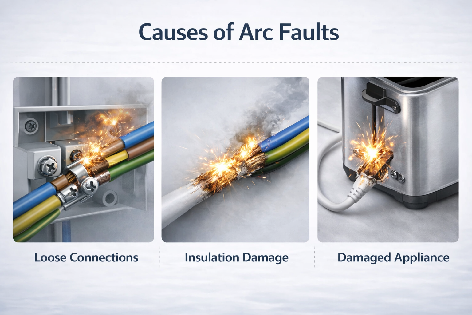 Arc faults are usually caused by loose connections, aging insulation, or non-standard installation.
